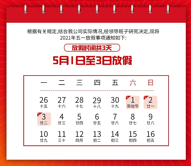 根據相關規定,結合公司實際情況,對于2021年51勞動節假期安排如下: