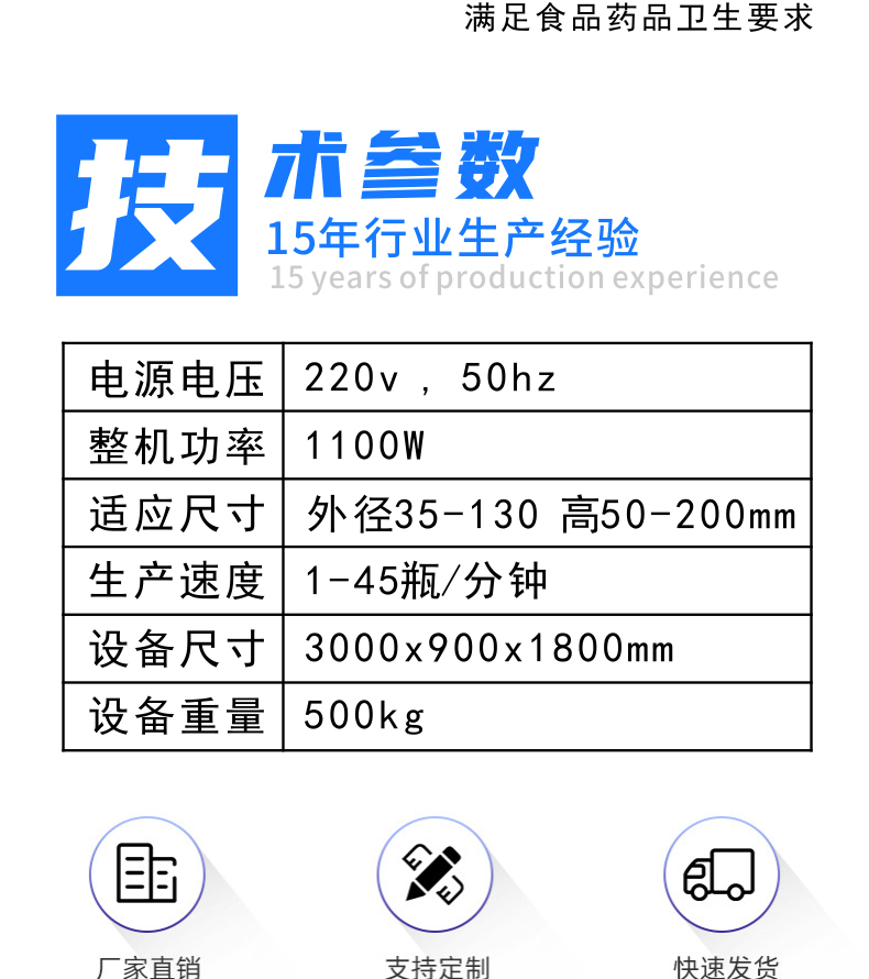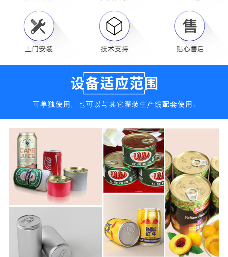 4、該設備的生產效率是半自動臺式封罐機的3倍,而且由于采用全自動裝置封罐,將原來半自動封罐貼標工作的6人減至由1個或2個人完成,大大提高了生產效率,同時也降低了用工成本;
